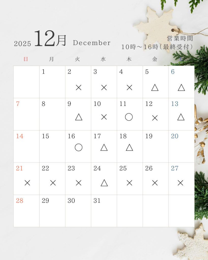 お問い合わせやLINEからのご返信は、12/31〜1/1はお休みをいただき、